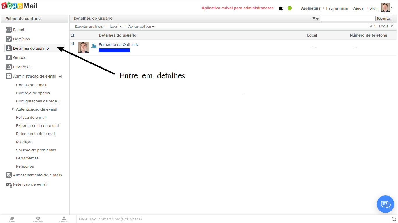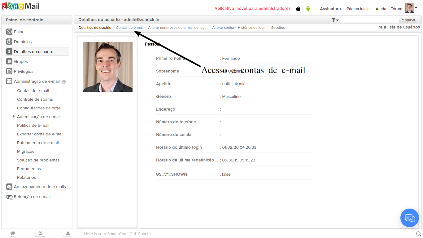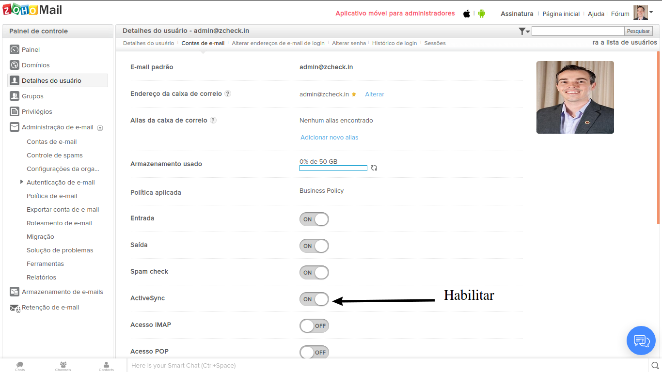 Administradores podem habilitar ActiveSync para usuários da organização através do painel de controle.