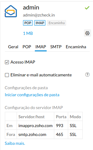 Detalhes do servidor IMAP